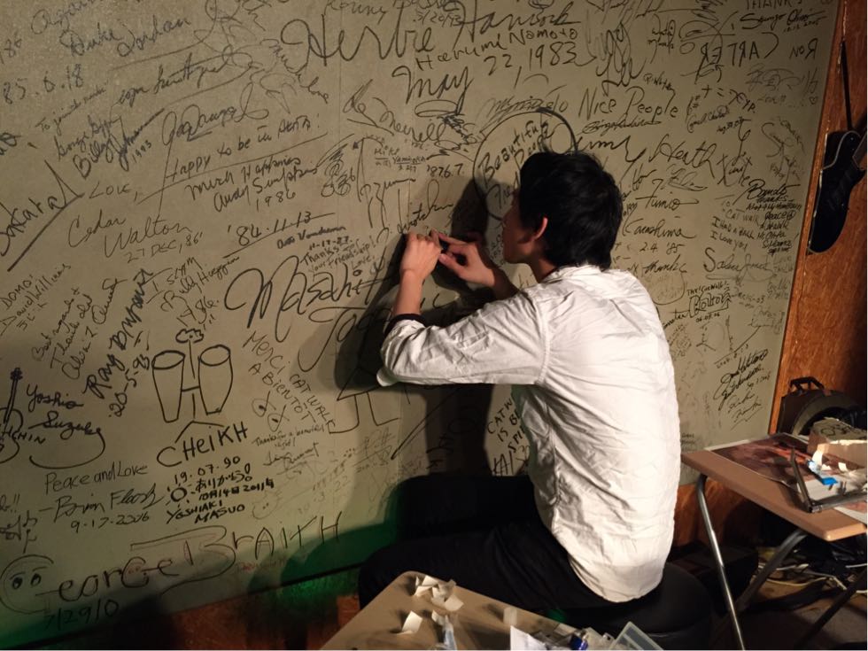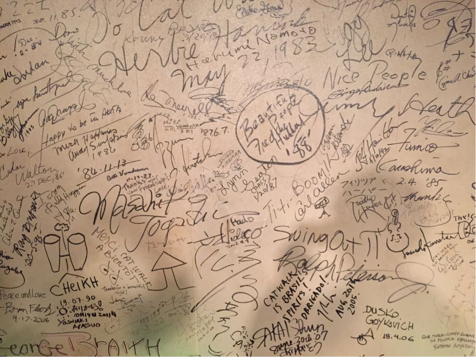 日本ジャズ界を代表する渡辺貞夫氏、日野皓正氏等、超一流ミュージシャンが来店され、壁に記念のサインを書いて残して行かれました。