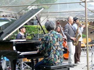 「処女航海」から始めたんですが、ぼちぼちだった観衆が少しづつ増えて、2曲目の「天国への七つの階段」の頃は会場いっぱいのお客様。