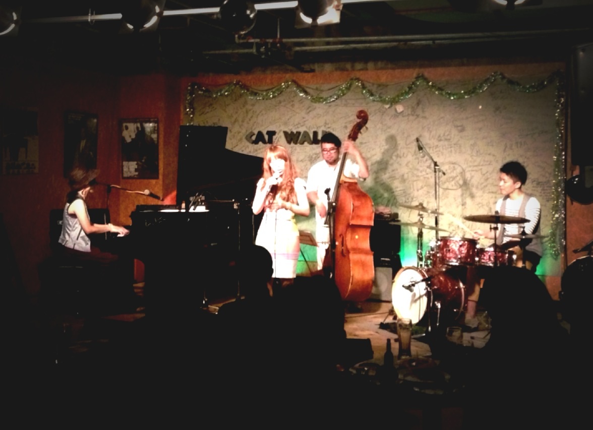 昨夜のライブ@ THE CATWALKは、デビュー2作目の『Moon River』発売記念ツアーの一環で来秋した、今話題沸騰中のジャズボーカリスト飯田さつきと、これ又、「Double Rainbow」と云うユニットで、人気ギタリスト小沼ようすけと共に活躍中の女性ピアニスト宮本貴奈のトリオのライブでした。